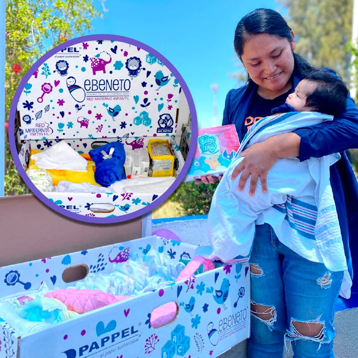 Contribuye con un Bebeneto, una caja cuna de cartón, con diseño, colchón, sábanas, frazadas y accesorios para los primeros seis meses del bebé, inspirada en la Baby box de Finlandia.
